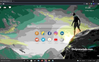 此主题还提供其他自定义选项。您可以点击设置按钮,然后点击小部件按钮关闭日期和时间显示。如果您想更改背景图像,只需点击设置按钮,然后选择背景选项。您甚至可以在Facebook、Twitter、LinkedIn和Instagram等社交媒体平台上分享此主题。
